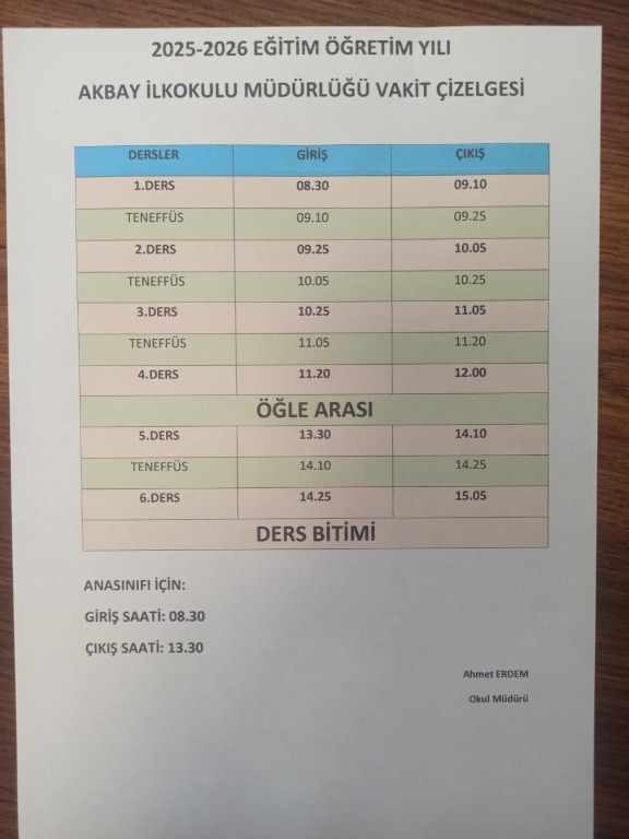 Okulumuz 2025-2026 eğitim-öğretim yılı itibariyle uygulanacak olan zaman çizelgesi görselde belirtilmiştir.Tüm velilerimize duyurulur.